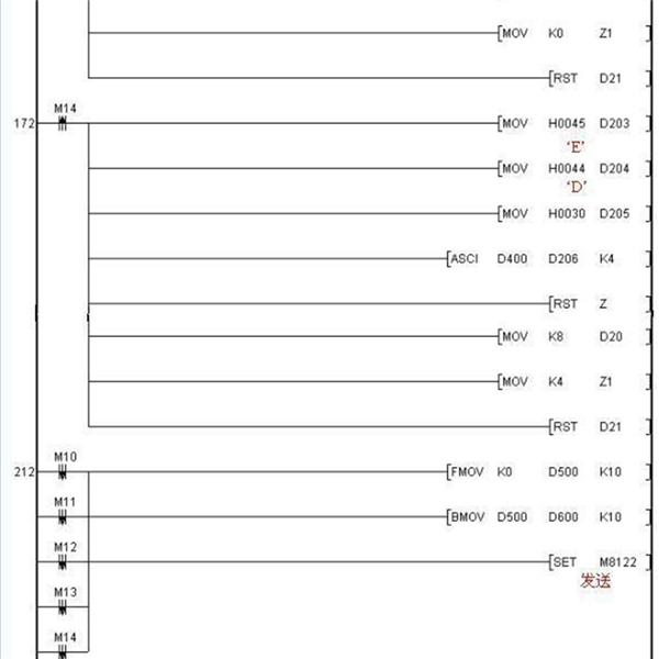有關利用三菱變頻器協議與變頻器進行通訊的PLC程序如下: