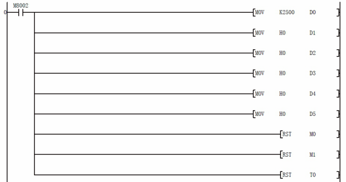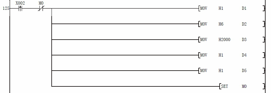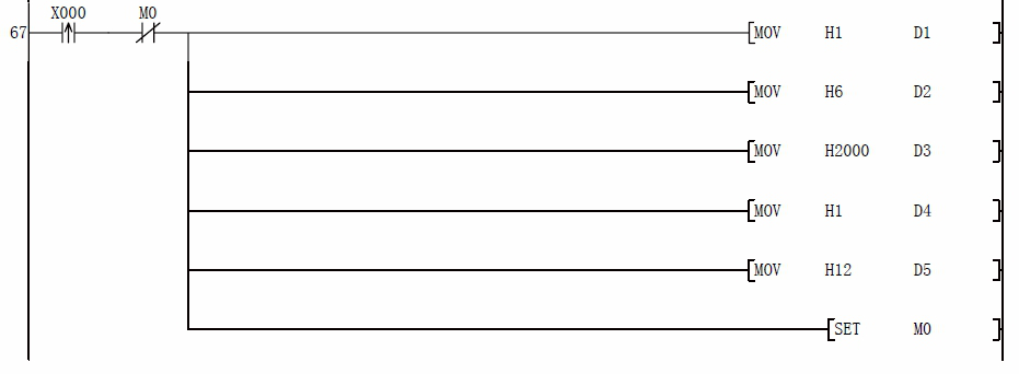 D5:寫頻率寄存器數(shù)據(jù),先給 D0 預(yù)寫想要的頻率值后,然后按下 X3 即可把預(yù)想的頻率寫入變頻器,比如預(yù)想寫如 21.22HZ 的話,那么應(yīng)該首先給 D0 賦值 K2122,然后按下 X3 即可寫入頻率