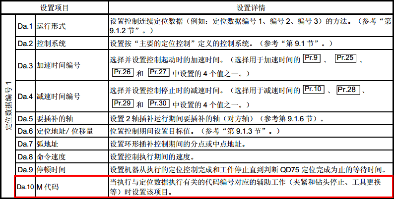 二:在定位數(shù)據(jù)的設(shè)置項(xiàng)目Da.10 “M 代碼”中設(shè)置M代碼編號(hào)(1-65535可以設(shè)置)