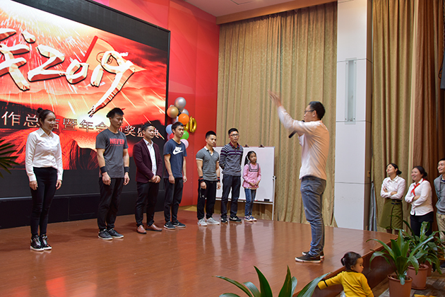 經過一個約摸小時的精心布置,會場一片喜慶洋洋的氣氛,在這里要夸夸會場布置的小伙伴,小手兒啊真巧。九點時分,現場已是座無虛席,很是熱鬧。突然,音樂響起了歡快的音樂,只見我們主持人邁著優雅的步伐緩緩地走上舞臺,用她那鏗鏘有力的聲音宣布:“海藍機電2019年年會正式開始”。